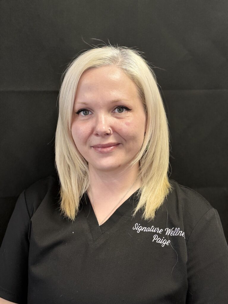 If Signature of Wellness runs like a well-oiled machine, you can thank Paige. As our Office Manager and self-proclaimed Chaos Coordinator, Paige is the heartbeat of our practice — keeping the team on track, the schedule flowing, and every patient experience seamless from start to finish.